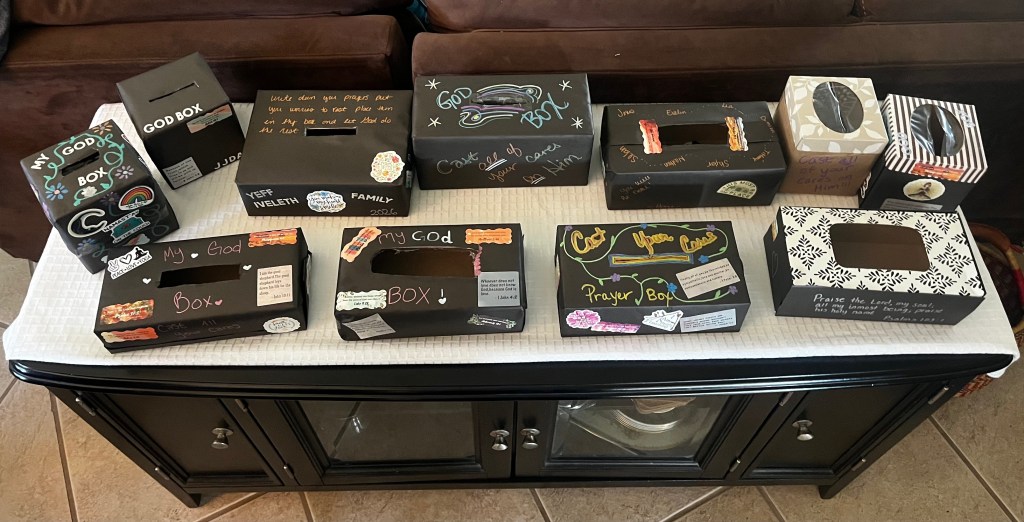 With 1 Peter 5:7 as our focus, we created God Boxes, writing down what we’re surrendering and placing it inside as a tangible act of faith and reminder to cast our cares on Him daily.