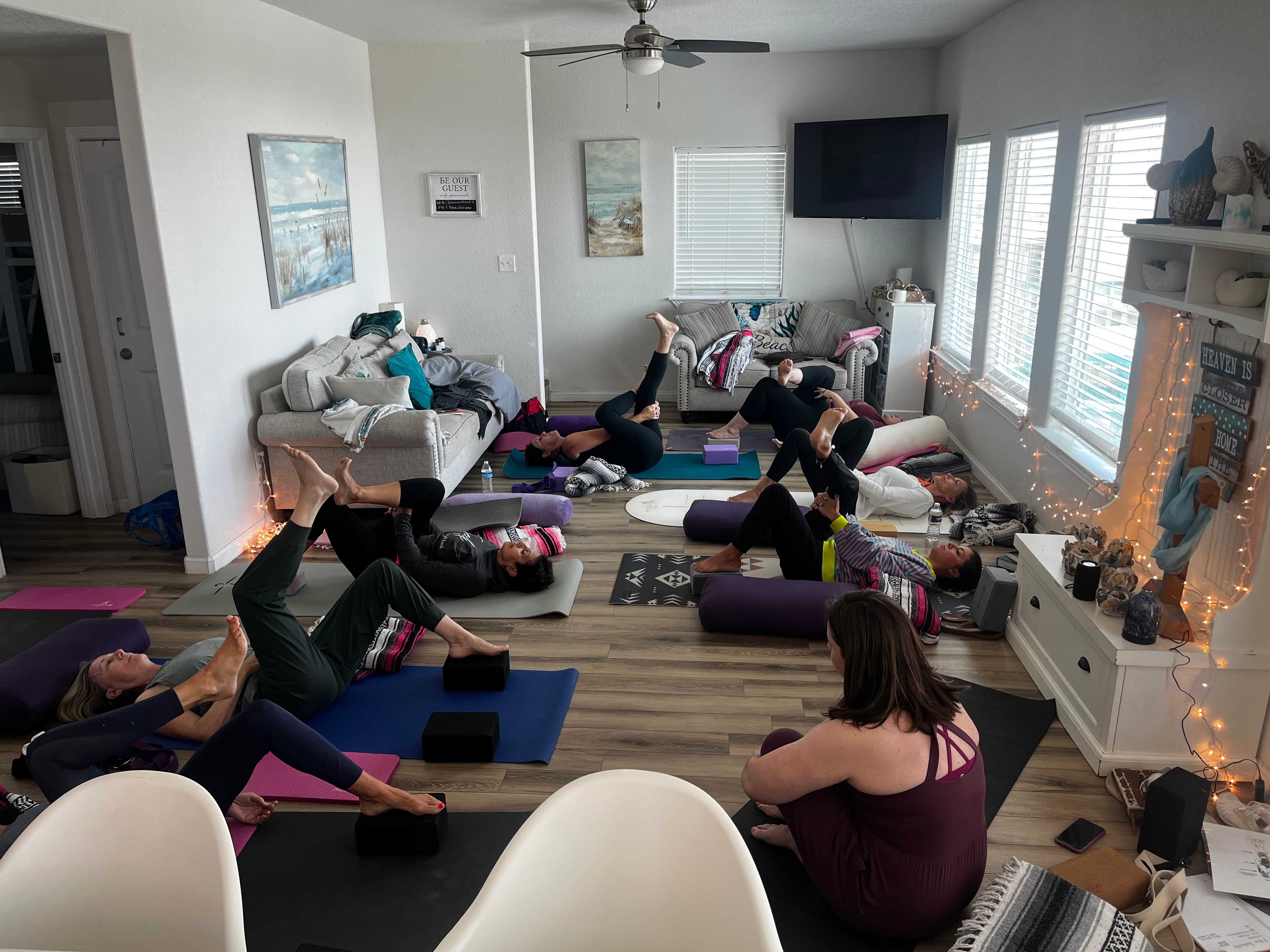 We practiced gentle Yin yoga, focusing on heart-opening postures to soften the body, calm the nervous system, and create space for deeper breath. Through breath prayer and pranayama, we explored how worry (merimnaō) pulls us apart—and how breath gently gathers us back together.